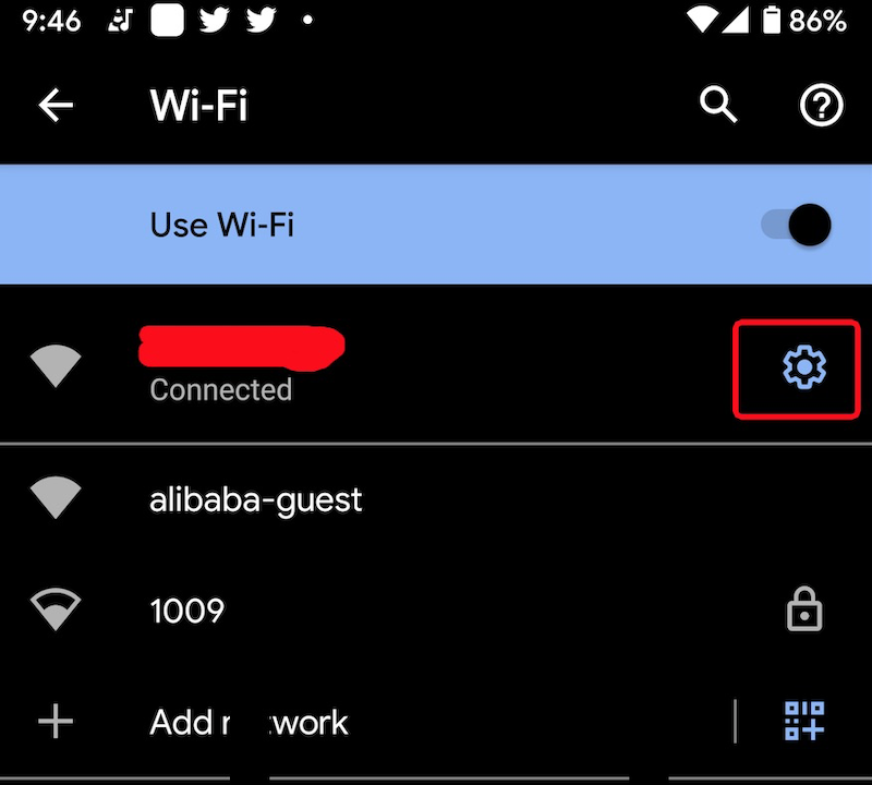Wi-Fi设置Proxy是在每个Wi-Fi热点连接以后,在连接热点旁的”齿轮⚙️””点击配置网络详情:
