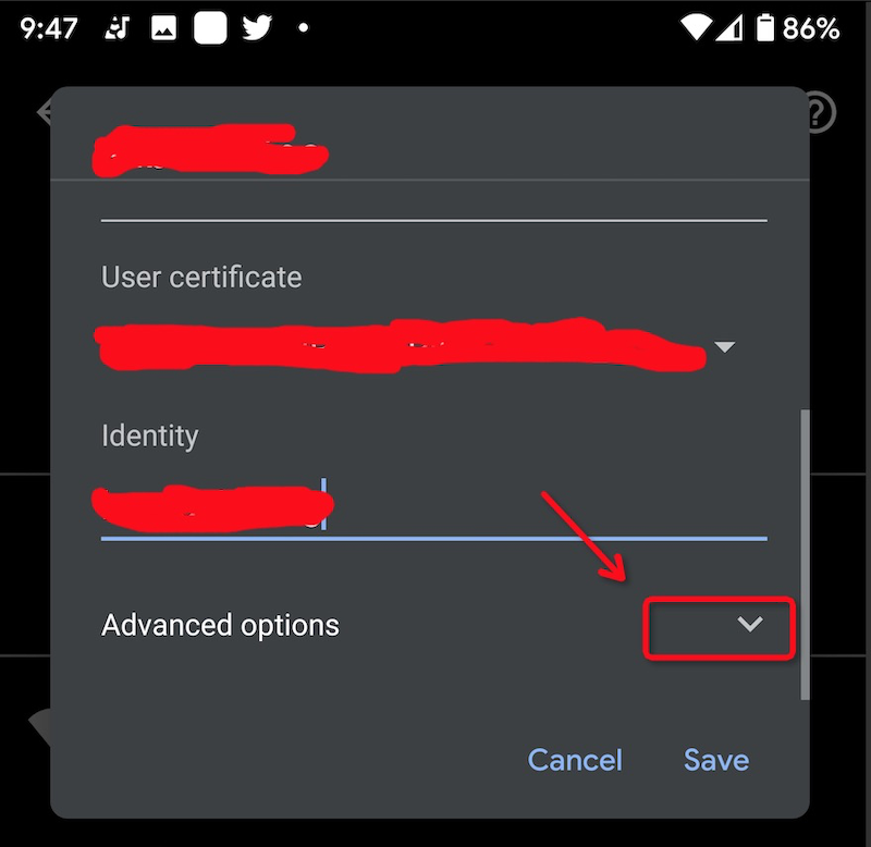 这里有一个很不直观的地方,就是你必须点击一下 Advanced options 下拉菜单,然后再滚动屏幕向下才能看到 Proxy 设置: