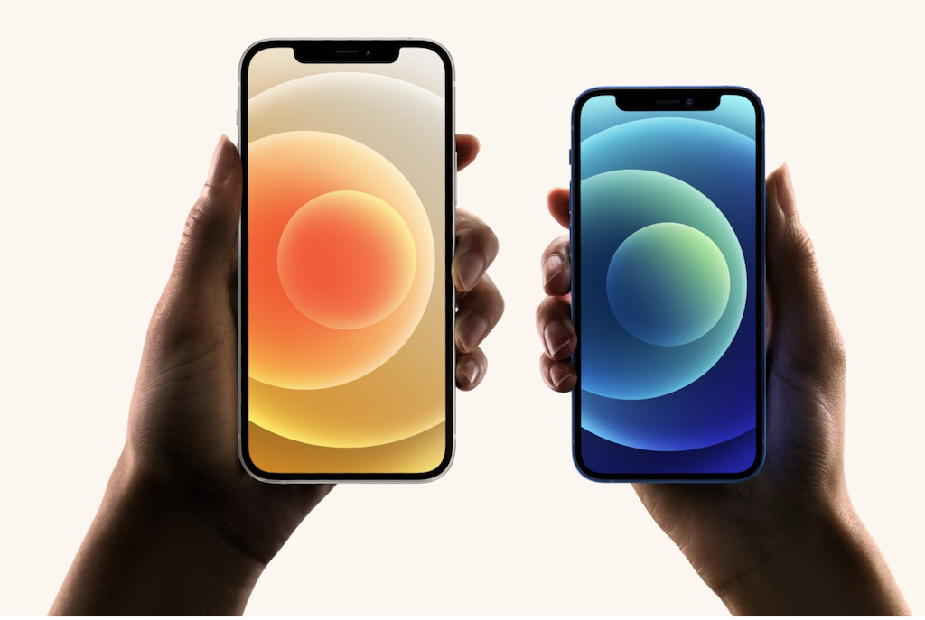iPhone 12 mini是苹果2020年10月推出的第一代5G手机中最小巧的一款,也就是Apple当时广告中宣传的全球最小5G手机(下图右边那款小手机):