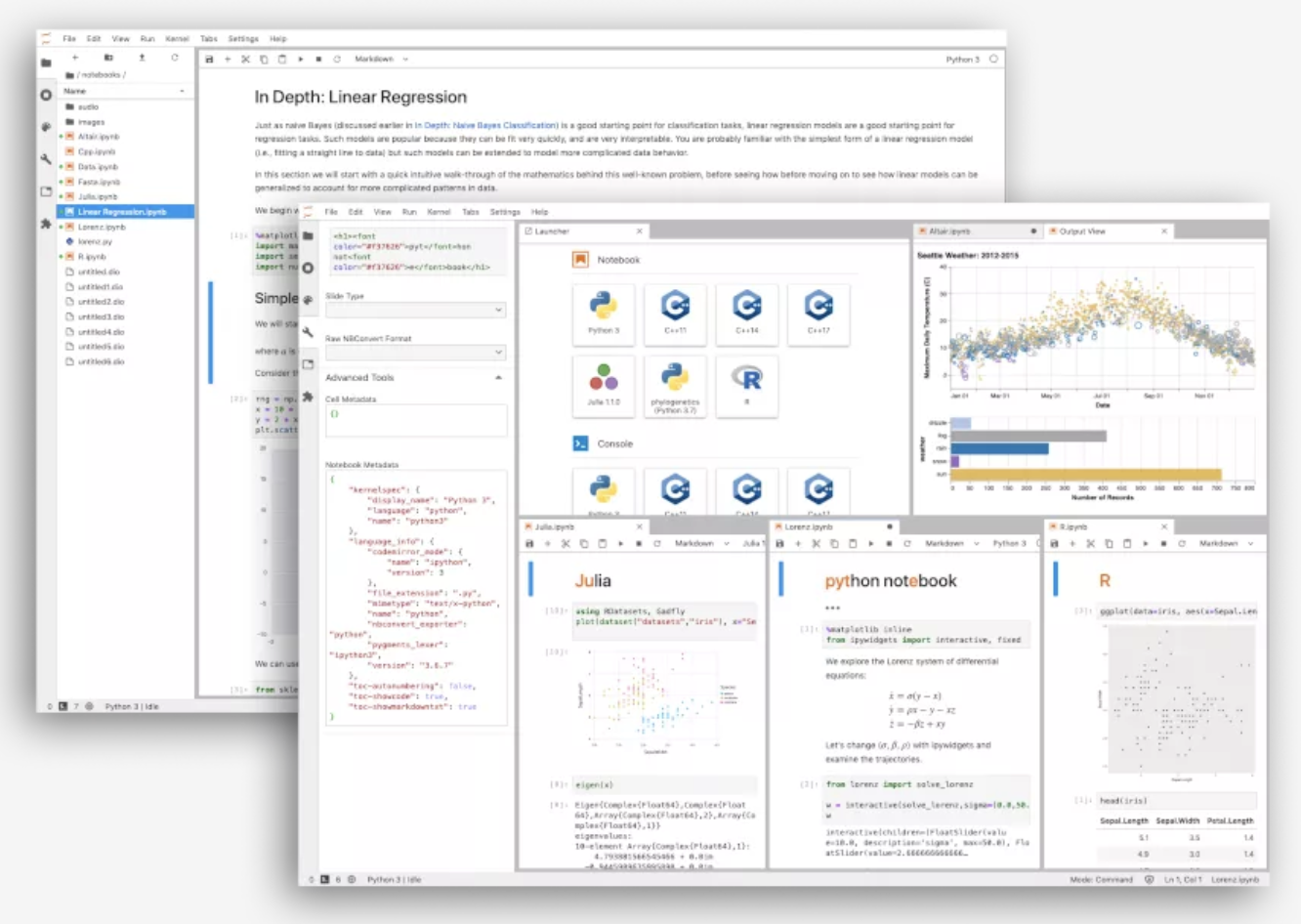 最早Jupyter是起源于Python交互式开发环境 IPython Notebook,后来将IPython和Python解释器剥离,实现对多种语言的支持,已经只吃了40多种语言,成为非常成功对交互式集成开发平台。