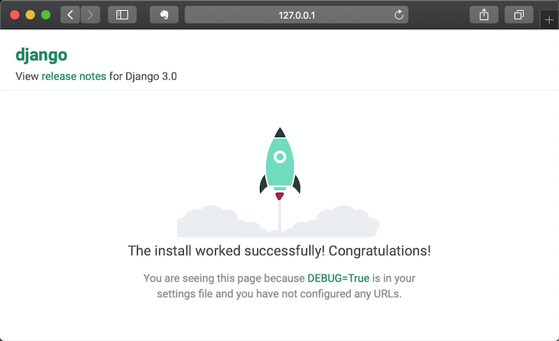 此时通过浏览器访问 http://127.0.0.1:8000/ 可以看到Django欢迎页面: