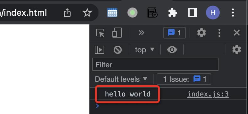 index.html,此时看到的是一个空白页面。这是因为上面这个简单的JavaScript脚本输出信息在console控制台,所以需要打开浏览器的developer console,例如在 chrome 中