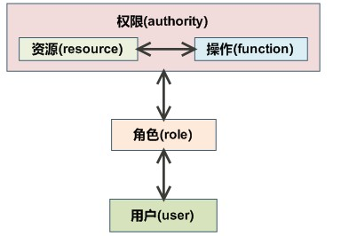 基本的RBAC模型中定义了三个对象和两个关系,三个对象分别是:user,role,resourc。一个用户可以属于多个角色,而一个角色下面也可以有多个用户。同样,角色和权限之间也是这种多对多的关系。