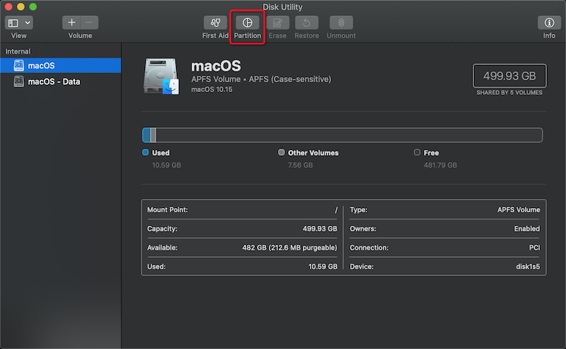 默认安装的macOS会占据整个磁盘,为了能够安装Linux,我们需要收缩macOS分区。使用的工具就是macOS的Disk Utilities。