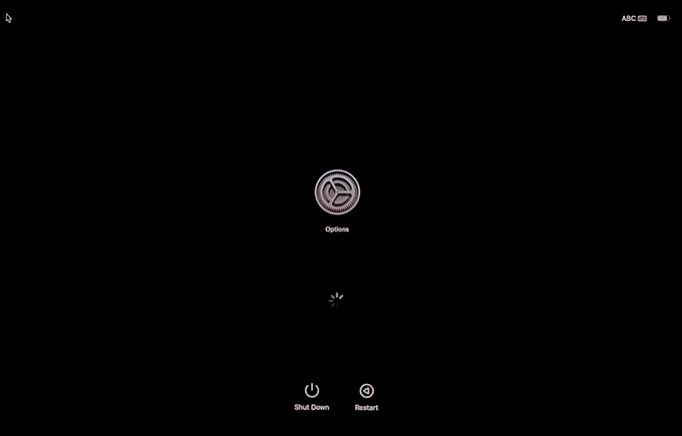 Entering startup options,也就是屏幕上会出现一个类似macOSSystem Perferences中Software Update的齿轮图案: