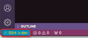 此时VS Code会弹出一个新的窗口连接到远程SSH服务器,开始初始化开发环境,完成后虽然看上去是本地的IDE,但是仔细观察就会看到左下角标识了远程服务器 SSH: z-dev :