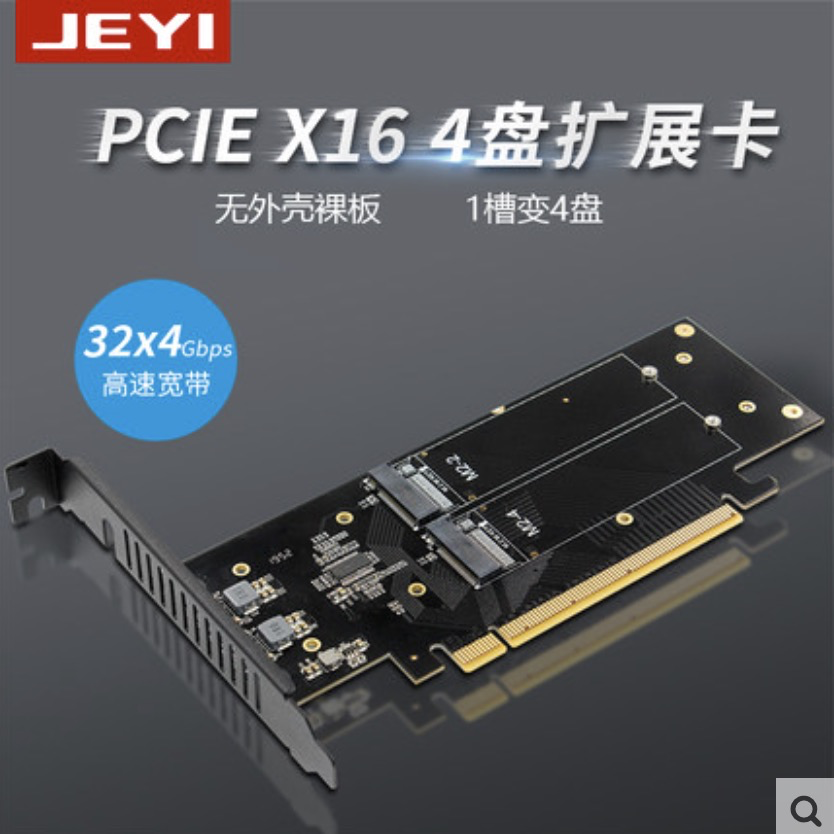 需要注意,接口应该是 PCIe3.0 X16 ,这样拆分4个以后才是 x4x4x4x4 ,可以满足较高速的 NVMe 读写
