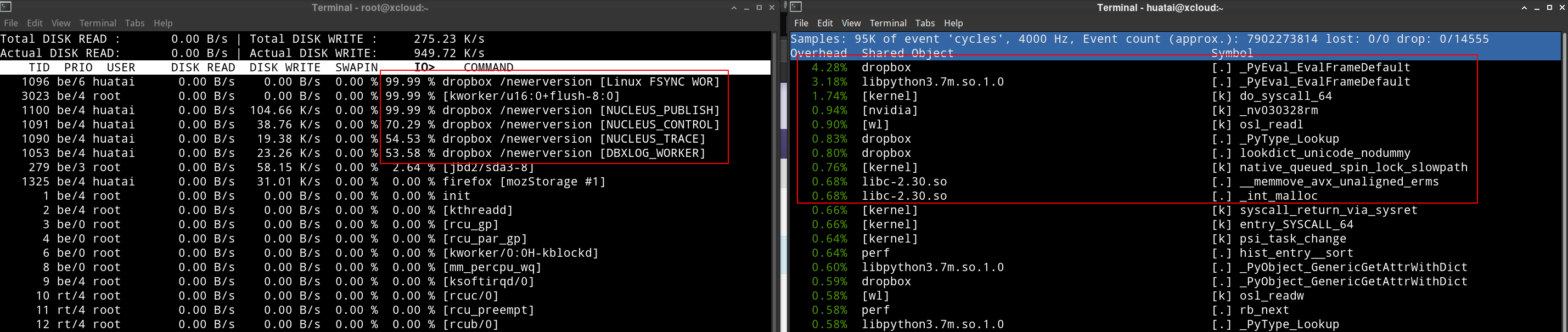 看起来就是 Dropbox 的 iowait 高。