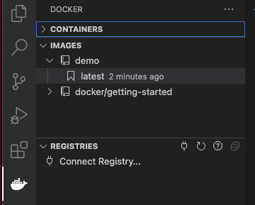 ⇧⌘P),然后选择Docker Images: Build Image...命令,此时 VS Code 就会根据前面的Dockerfile构建镜像在 VS Code 左方的
