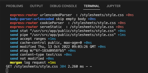 验证成功后,在终端中按下 ctrl-c 终止node.js服务,此时在浏览器中已经无法访问页面